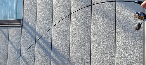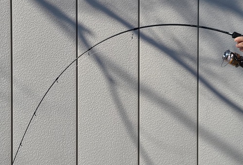 こちらは魚が遠くで掛かった事を想定して曲げています。