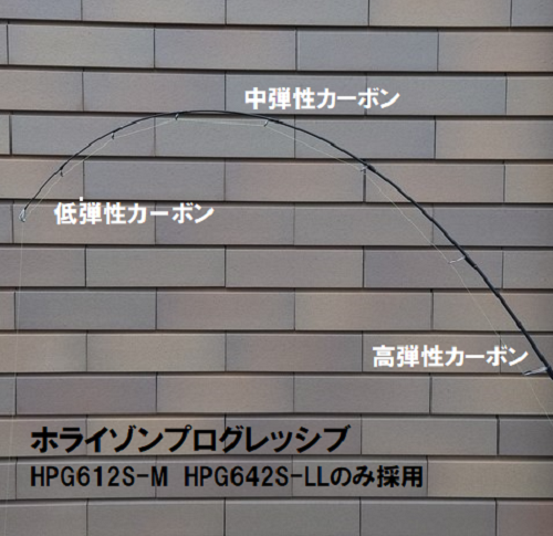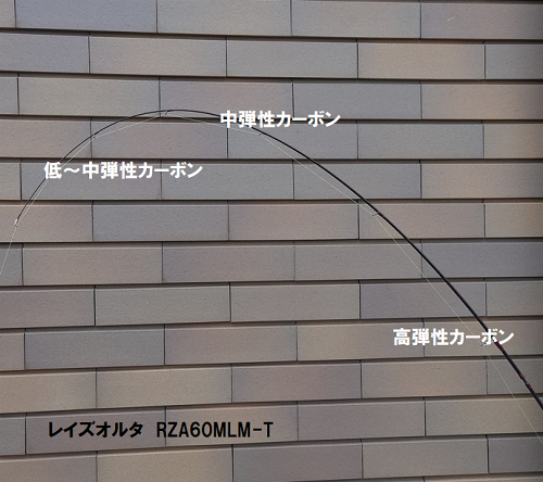 ティップに低弾性カーボンを採用しベリー部分には中弾性カーボン、