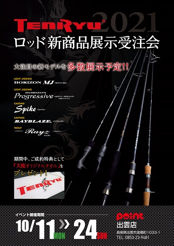 ポイント出雲店 様にて、TENRYUロッド新製品 展示受注会を開催いたします。
