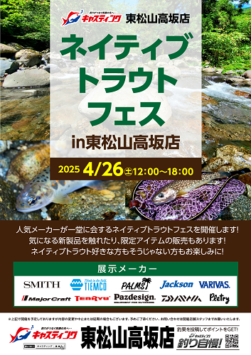 人気メーカーが一同に会するネイティブトラウトフェスに出展いたします。