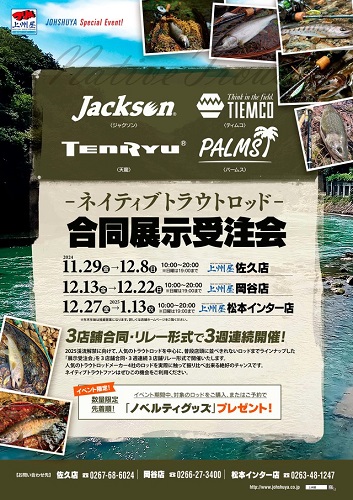 人気ブランドのトラウトロッドが一斉に展示されます。