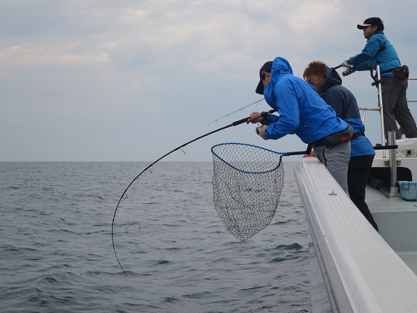 船上ではすでに船長がワラサをキャッチ。時合いです!
