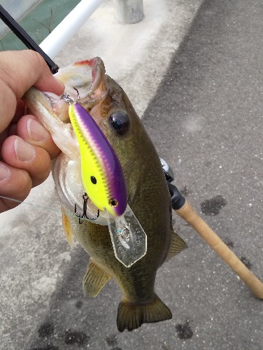 諦め半分で、水深1mのコンクリート護岸を擦るようにクランクを通してみました。