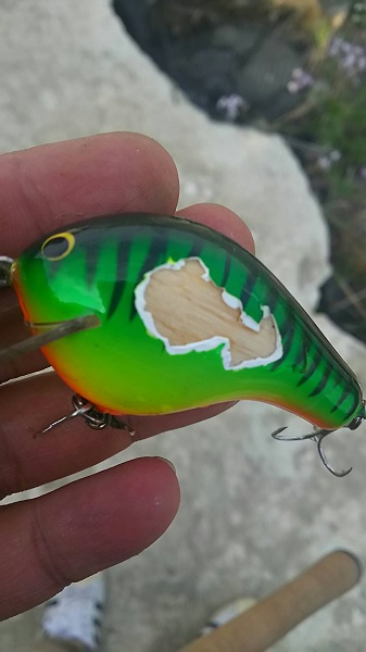が、ナマズが暴れたせいで、お気に入りのバグリーの塗装が剥げてしまいました。