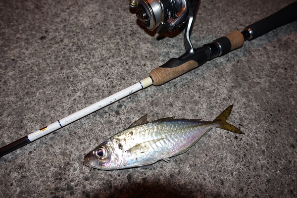 すると数投でヒット!上がってきたのは20cm程の小型のアジであった。