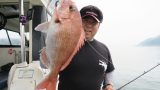 首振りが大きく産卵後の大鯛と思って慎重にファイト。