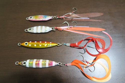 20g程度のジグにネクタイをセットして底付近を横方向に誘い続けることができます。