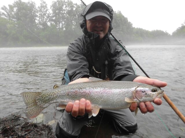 濁りの影響かクリアな支流が注ぎ込んでる所は反応が良かった。