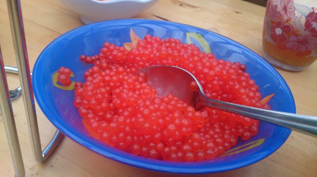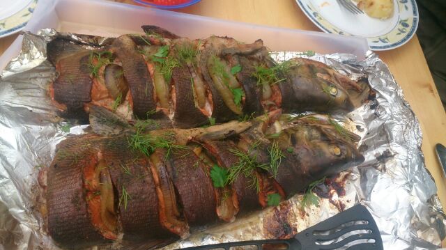 その後足元をスイングするとネルカ(レッドサーモン)がヒット!