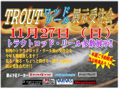 トラウト用品を集めた展示受注会が開催されます。