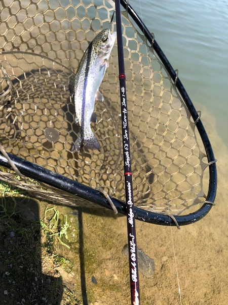 ロッドはオルタ61L、1.5gのスプーンで釣り始めると、