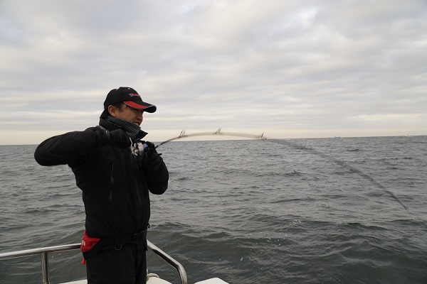 ロングジグを付けたロッドを手に取り、ゆったりとしたワンピッチで探っていく。