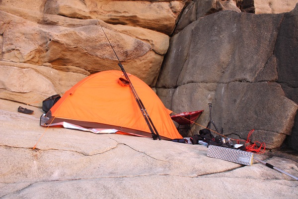 一人なので、まだ明るいうちに磯泊まりの準備を始めます。