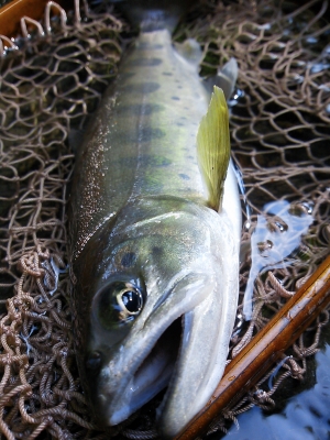 綺麗なアマゴが飛び出した。