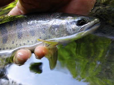 暫く探ったが、イワナが数匹遊んでくれただけだった。