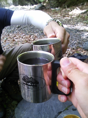 大自然の中で煎れたコーヒーは最高に旨い。