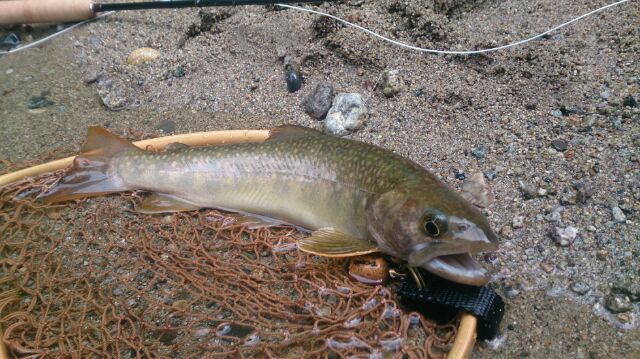 巻き返しの反転流にカディスを送り込むと良型のヤマメもでました。