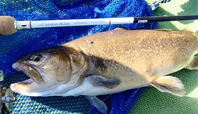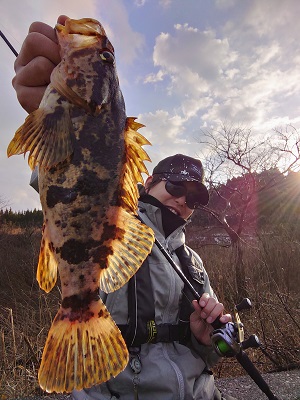 遠投をした先でロッドを思い切りぶち曲げてホンダワラごと