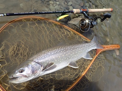 今年初イワナちゃんです。やや濁り+増水気味で大きい個体の反能が良かった気がします。
