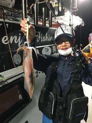 親子で喜んでいます!開始早々は潮が早くて釣りづらい状況でしたが