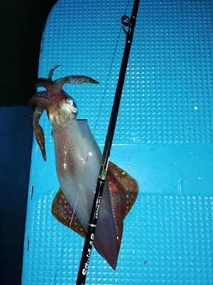 色々試すも最終的に5gフリーリグでボトムを探っていたら,、モゾッと吸い込むアコウの様なあたりが!