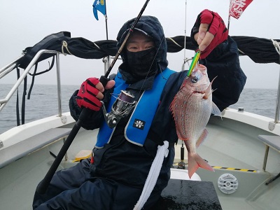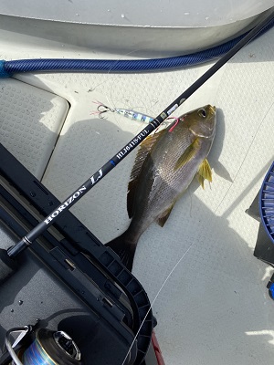 水深30m、風が多少あり両舷に同船者が居たため、120gのタングステンジグを使用。