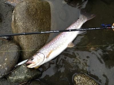 写真は入魂のためヤマメを狙いにボサ川へ入ったところ、最初にあがったアメマスです。