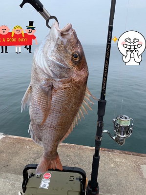 フッキング後はこのサイズの真鯛の突っ込みも竿全体がスムーズに曲がり込み吸収してくれるので