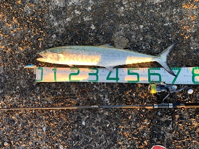 大型のシーバスかと思いましたがフルドラグで寄せてくるとなんと71センチのサワラでした。