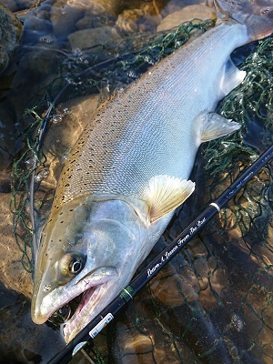 大イワナの大暴れも主導権を渡さないロッド。