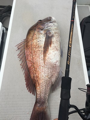 二週連続の良型真鯛です。バットパワーを活かして余裕のファイトでした。