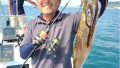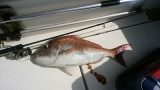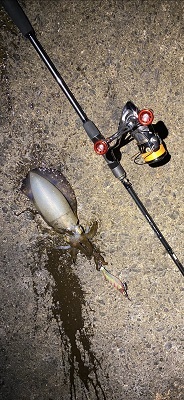エギでイカを数杯釣り、ベイトが回ってきたのでプラグに結び変えて5投目で食いました!