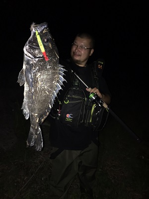 チヌの強烈な引きにも良く曲がりそしてバッドで寄せてくる楽しいファイトをさせてもらいました。