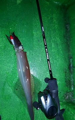 柔軟なティップが揺れに追従し水深55mのボトム付近のイカの当たりも取ることができました。