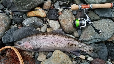 今年の上流部解禁は50cmオーバーのレインボーでした。