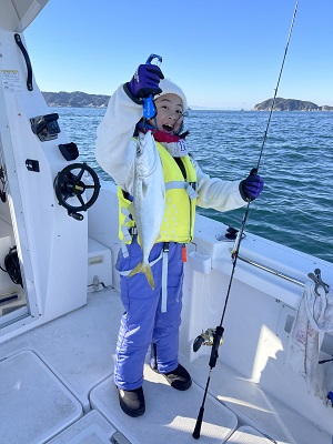 2022初釣り、ポイント到着1投目で見事キャッチ、その後ワラサ、ハマチ連続ヒットで大喜び!!