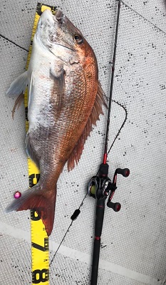 竿の粘りで鯛を疲れさせ浮かせることができました。