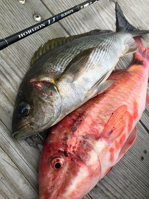 他にもオオモンハタ、アカハタ、キジハタ、サバなど釣れ楽しいスーパーライトジギング となりました。