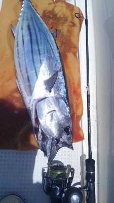 急行してそのままのタックルでキャストしたところ、ホンガツオが釣れてしまいました。