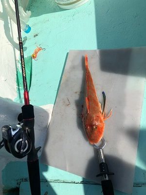 お目当ての魚は釣れませんでしたがホウボウゲットです。