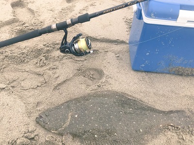 期待を胸に、なんと1投目で釣れた魚はびっくり良型ヒラメ!