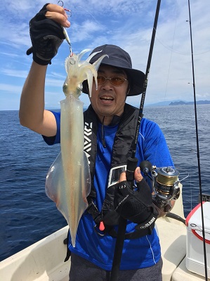 義兄のプレジャーボートに乗せてもらい、メタルジグに胴長36センチのマイカがヒット。