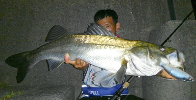 常夜灯絡みのポイントへ大型シーバスだけを狙って愛用ロッドと共に向かいました。