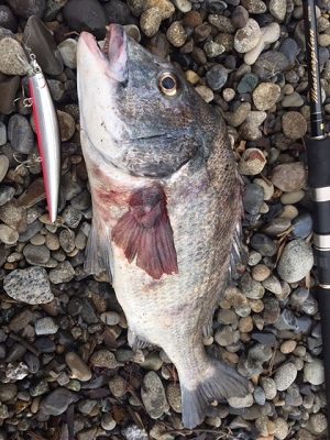 このクロダイも豪快な引きを楽しみながら難無くサーフにずり上げました。