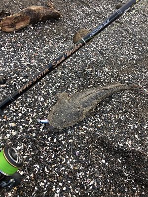 台風が過ぎた後でようやく海が静かになり、ベイトっ気がむんむんする中で60センチオーバーのデカマゴチが釣れました。