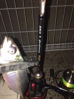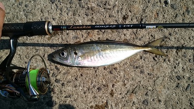 そんなに大きいアジではなかったが元気が良かった為か、ルナキアのロッドの特性でよく引いて楽しませてくれました。