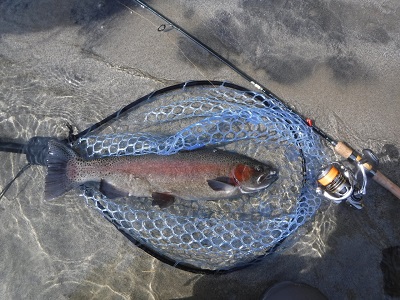 ボウズ逃れの放流ニジマスが釣れてくれました。