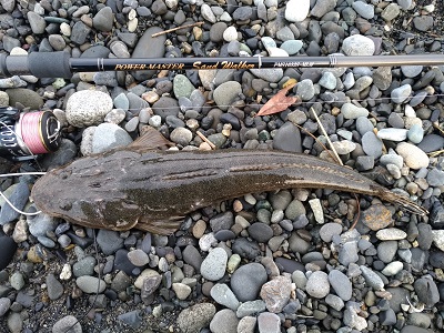 トレブルフックの針先一本のみのスレがかりでしたが、運よくキャッチ出来ました。