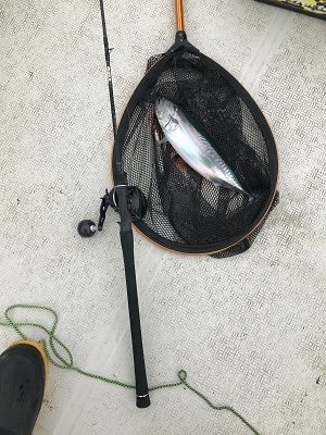 カツオは表層でヒットし、何度かジャンプされましたが、しっかり追従してくれて取り込む事ができました。