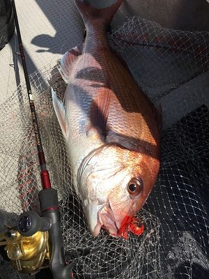 ドテラ流しでのタイラバ、ロッドの性能で余裕のやり取りで穫れました